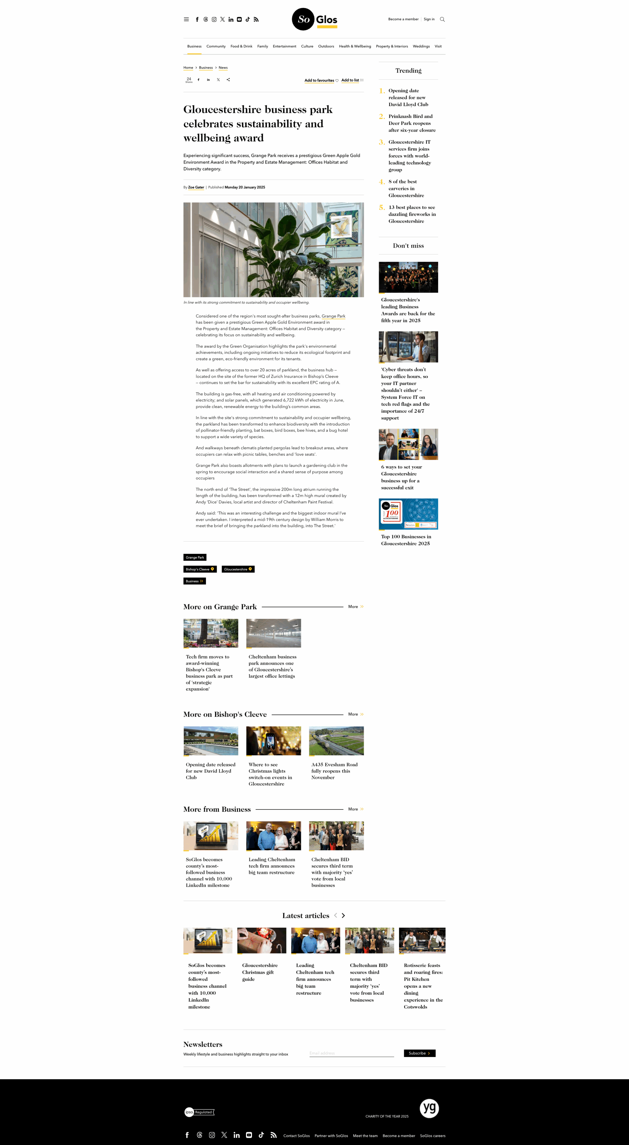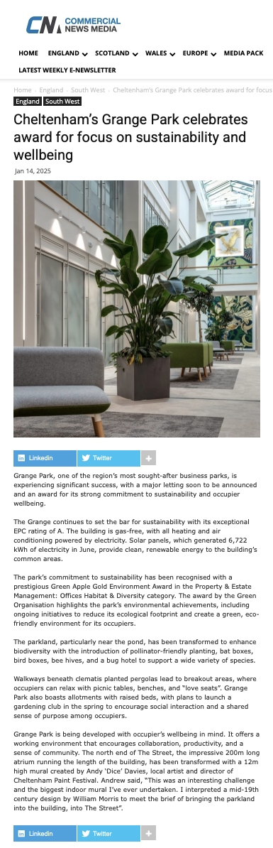 Grange Park, one of the region’s most sought-after business parks, is experiencing significant success, with a major letting soon to be announced and an award for its strong commitment to sustainability and occupier wellbeing.