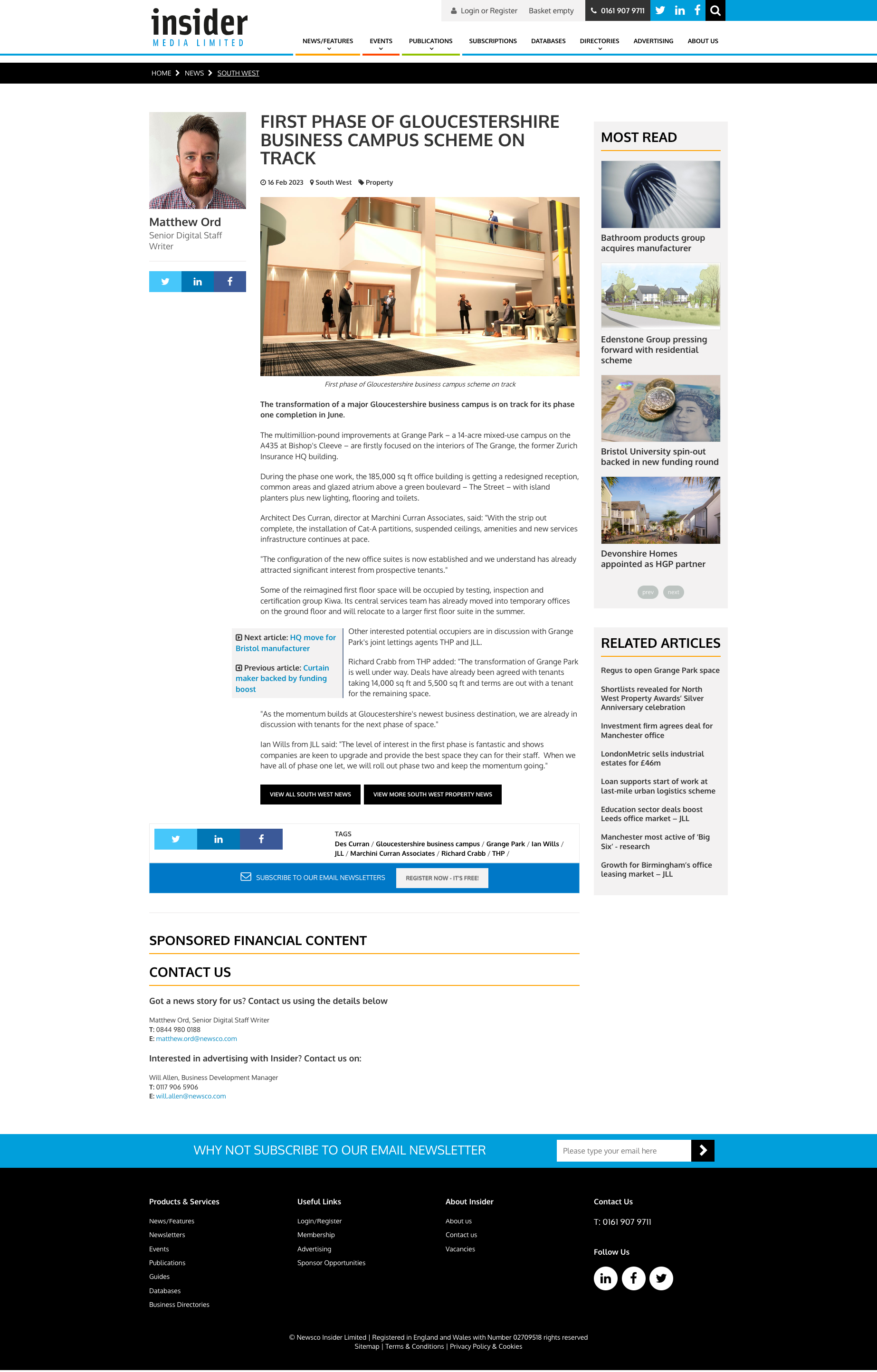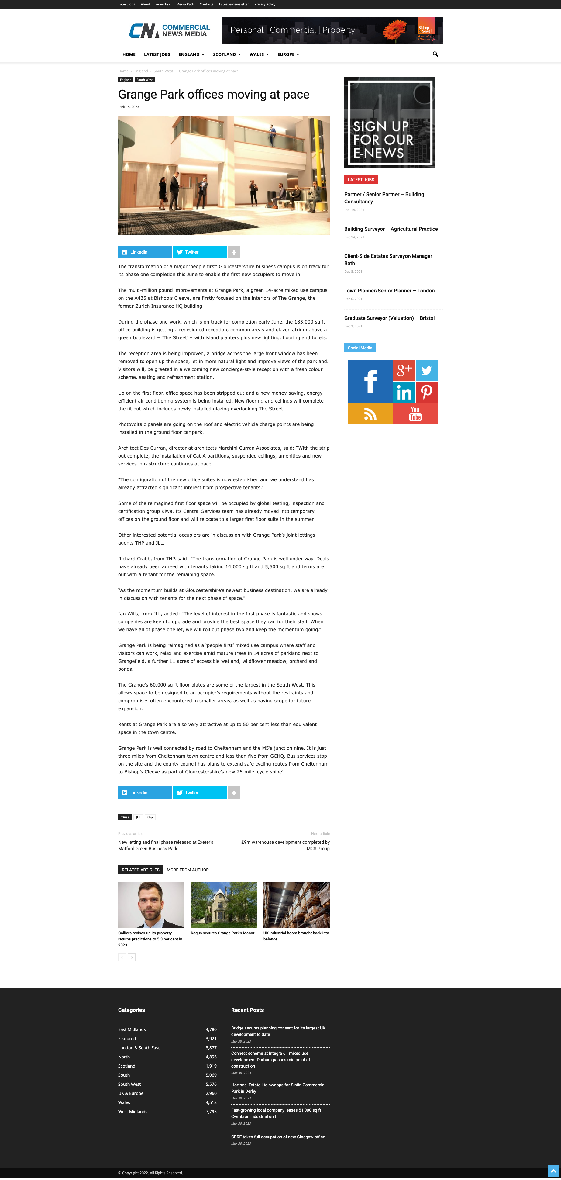 Richard Crabb, from THP, said: “The transformation of Grange Park is well under way. Deals have already been agreed with tenants taking 14,000 sq ft and 5,500 sq ft and terms are out with a tenant for the remaining space.